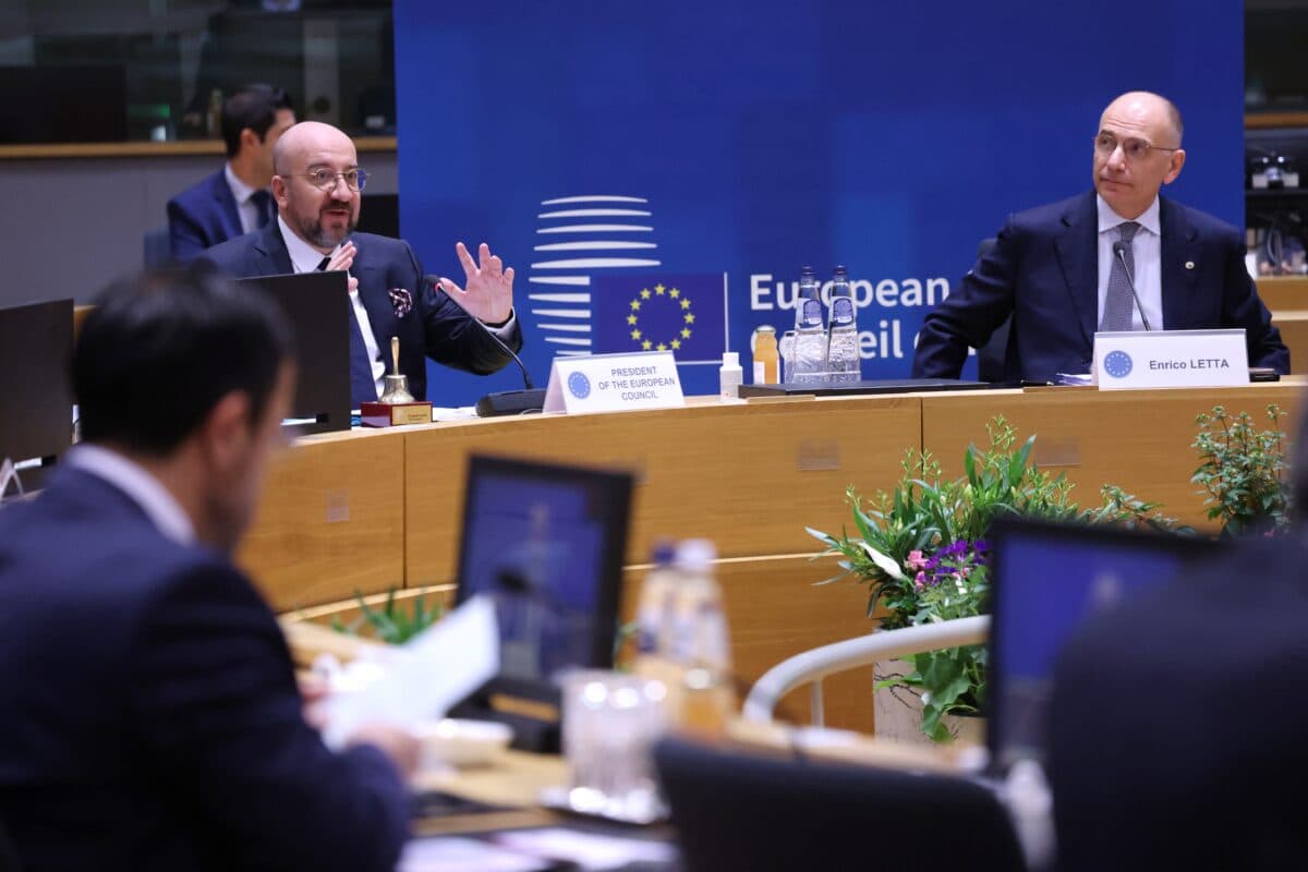 EU-Rådets president Charles Michel og Italias tidligere statsminister Enrico Letta under torsdagens toppmøte i Brussel der konkurransekraft og indre marked var tema. Foto: Ministerrådets pressetjeneste