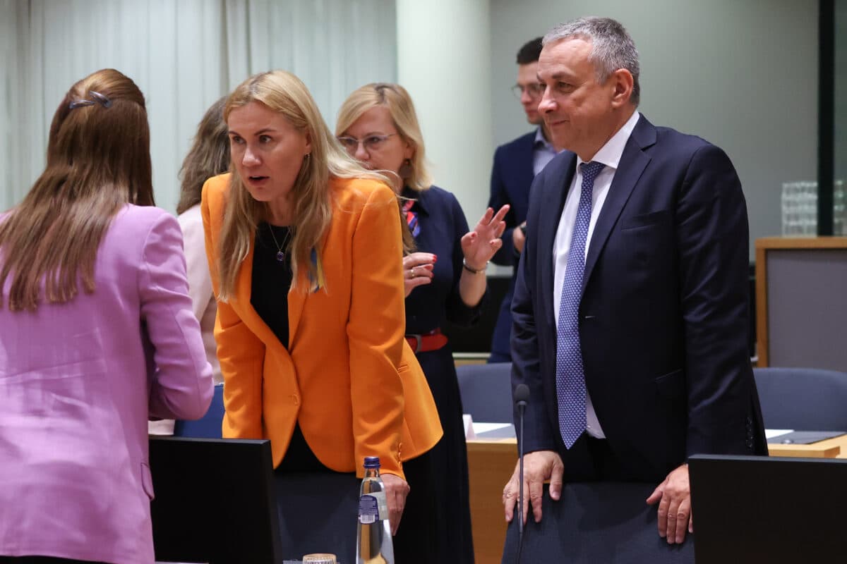 Pristak på gass kommer til å bli hett tema også på energiministermøte 30. september. Her fra møtet 9. september, er EU-kommissær Kadri Simpson ( imidten) i diskusjon med energiminister Miriam Dalli fra Malta og industri og energiminister, Jozef Sikela fra Tsjekkia som har formannskapet i EU.