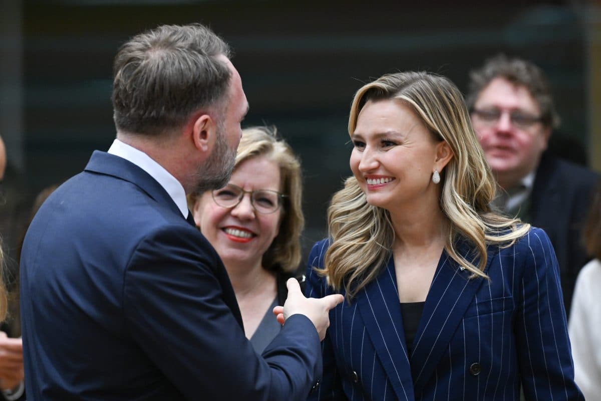 Sveriges nærings- og energiminister Ebba Busch i samtale med EUs nye energikommissær Dan Jørgensen. Foto: EUs medieservice