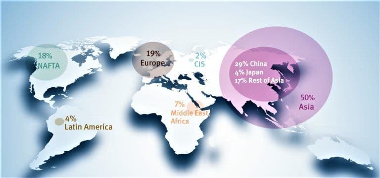 – I Vest‐Europa har forbruksveksten av plast ligget mellom 1,5 til 2 prosent de siste årene. I Sentral‐ og Øst‐Europa har veksten vært mellom 2 og 4 prosent. Kina og India er i enorm utvikling. Kineserne og inderne har en nesten dobbelt så høy forbruksvekst av plast som europeere.