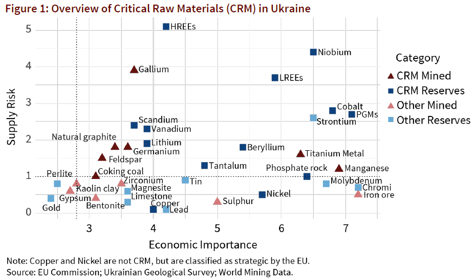 Råstoffer fra Ukraina? Europa må sikre tilførselen av kritiske råmaterialer som litium, kobolt og sjeldne jordarter til fornybar- og klimateknologier, fremholder EASAC-rapporten. Ukraina har potensial til å bli en nøkkelpartner på dette feltet, konkluderer et politikknotat fra det tyske Ifo-instituttet (engelsk). Landet har betydelige ressurser som ikke utvinnes i dag, og potensialet er særlig stort hvis det investeres i raffinering ved siden av utvinning, ifølge notatet.