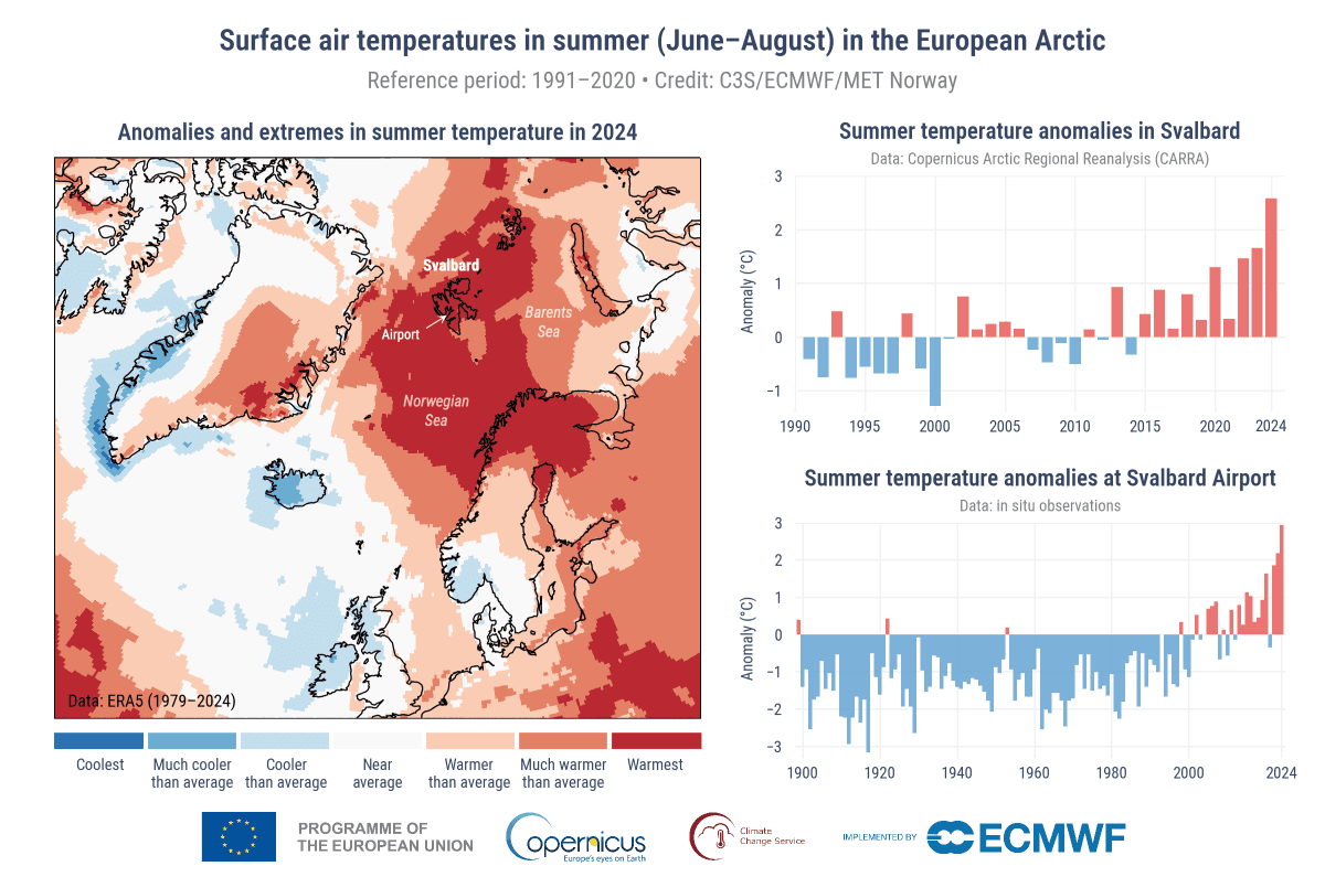 Klimaets tilstand:2024 var det varmeste året som er målt i Europa. Havtemperaturen var den høyeste noensinne, og det var også temperaturen i innsjøene. Mer is smeltet fra isbreene i Skandinavia og på Svalbard enn noen gang før. På Svalbard var sommeren igjen rekordvarm. 2024 var det verste flomåret siden 2013. I Valencia falt det 771,8 millimeter regn i løpet av 24 timer under katastrofen der i månedsskiftet oktober-november. Les hele rapporten.