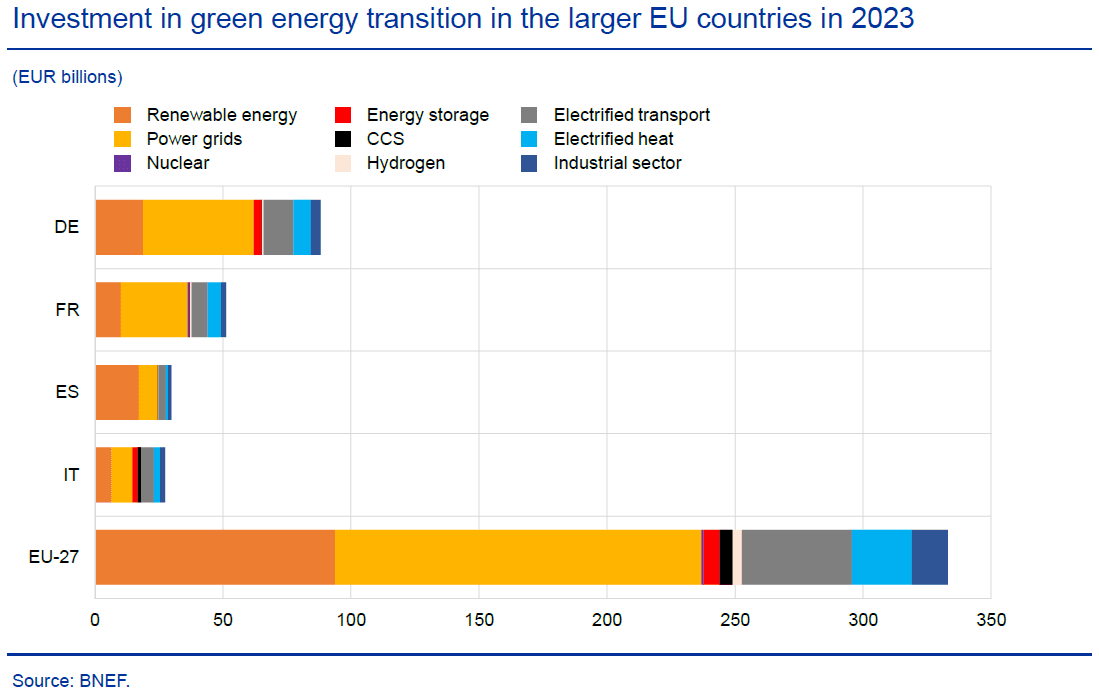 Forskere ved Den europeiske sentralbanken: EU må investere mye mer for å nå klimamålene for 2030. Også om status for grønn industri og kraftmiksen i 2024.