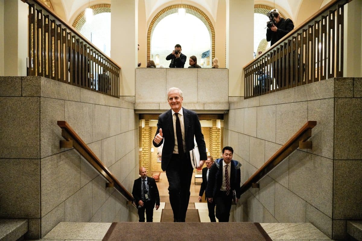 Statsminister Jonas Gahr Støre på vei inn på Stortinget for å presentere statsbudsjettet, 7. oktober 2024. (Foto: Thomas Fure/NTB)