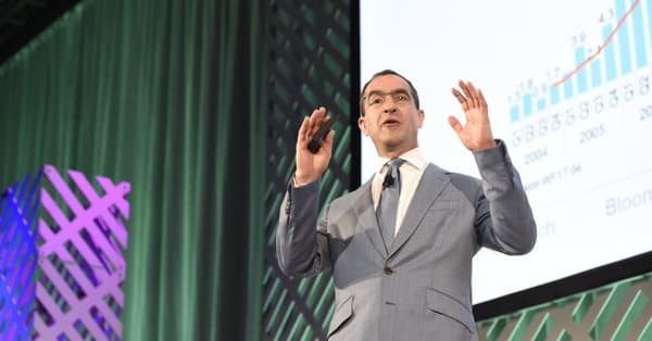 Statusrapport: Michael Liebreich i Bloomberg New Energy Finance gir sitt bilde av utviklingen innen fornybar energi. Mye bra informasjon å hente i presentasjonen han ga i New York denne uken. (Foto: Bloomberg New Energy Finance)