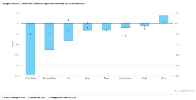 Globale CO₂-utslepp gjekk ned 5,8 prosent i 2020 – den største prosentvise nedgangen sidan andre verdskrigen. Kraftig fall i oljekonsum frå vegtransport og flytrafikk var to av dei viktigaste drivarane, viser oppdaterte data frå Det internasjonale energibyrået (IEA). Også kolkonsumet gjekk ned i fjor. Men – IEAs månadlege data avslører at nedgangen var midlertidig, og at utsleppa ved utgangen av 2020 låg 2 prosent over nivået på same tid i 2019. Den viktigaste forklaringa: Kinas kolfyrte omstart i siste halvdel av 2020.
