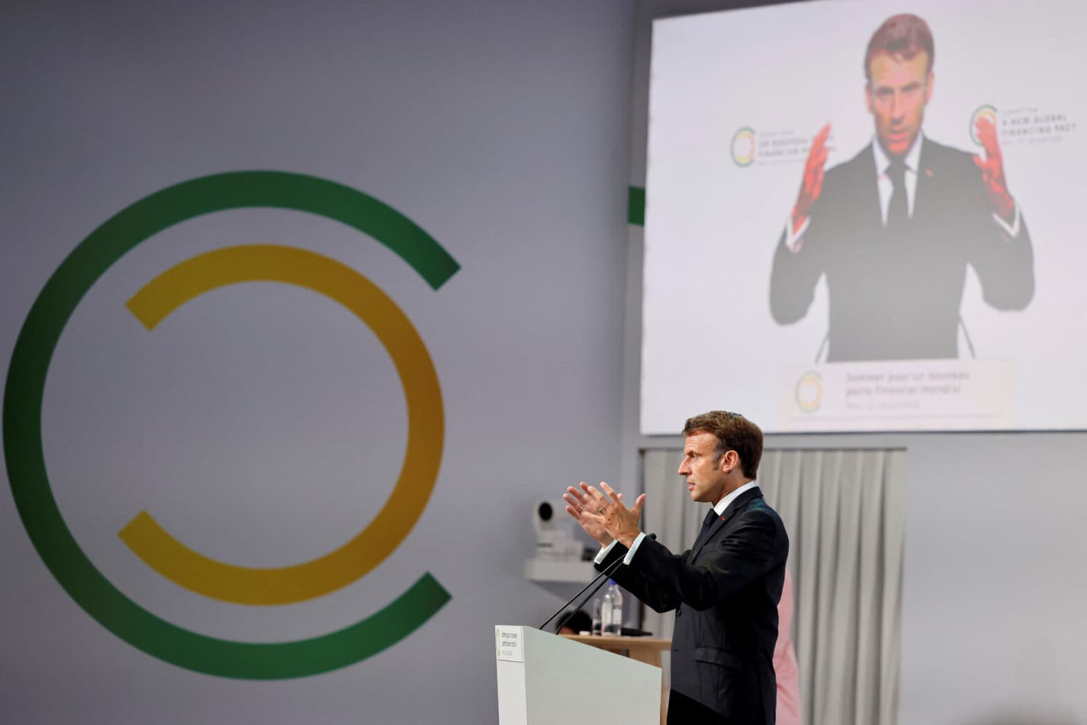 Frankrikes president Emmanuel Macron åpner møtet om en ny global finanspakt i Paris 22. juni 2023. (Foto: Ludovic Marin/Pool via Reuters/NTB).