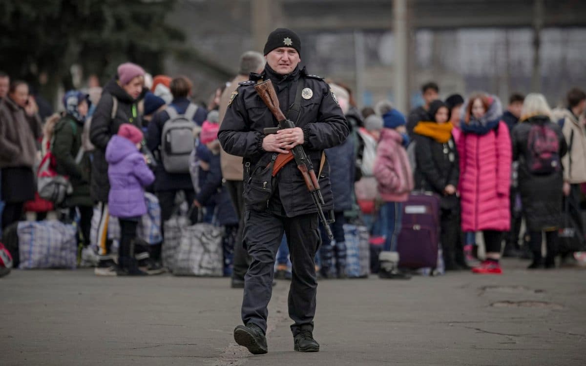 Folk venter på tog fra Kostiantynivka i Donetsk-regionen til Kyiv 24. februar 2022. (Foto: Vadim Ghirda/AP/NTB)