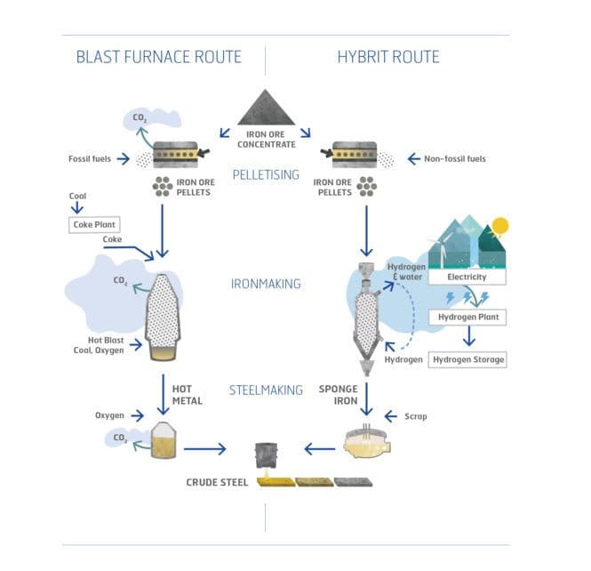 reduksjon fra hydrogen, trolig i Oxelösund. Frem til 2040 skal