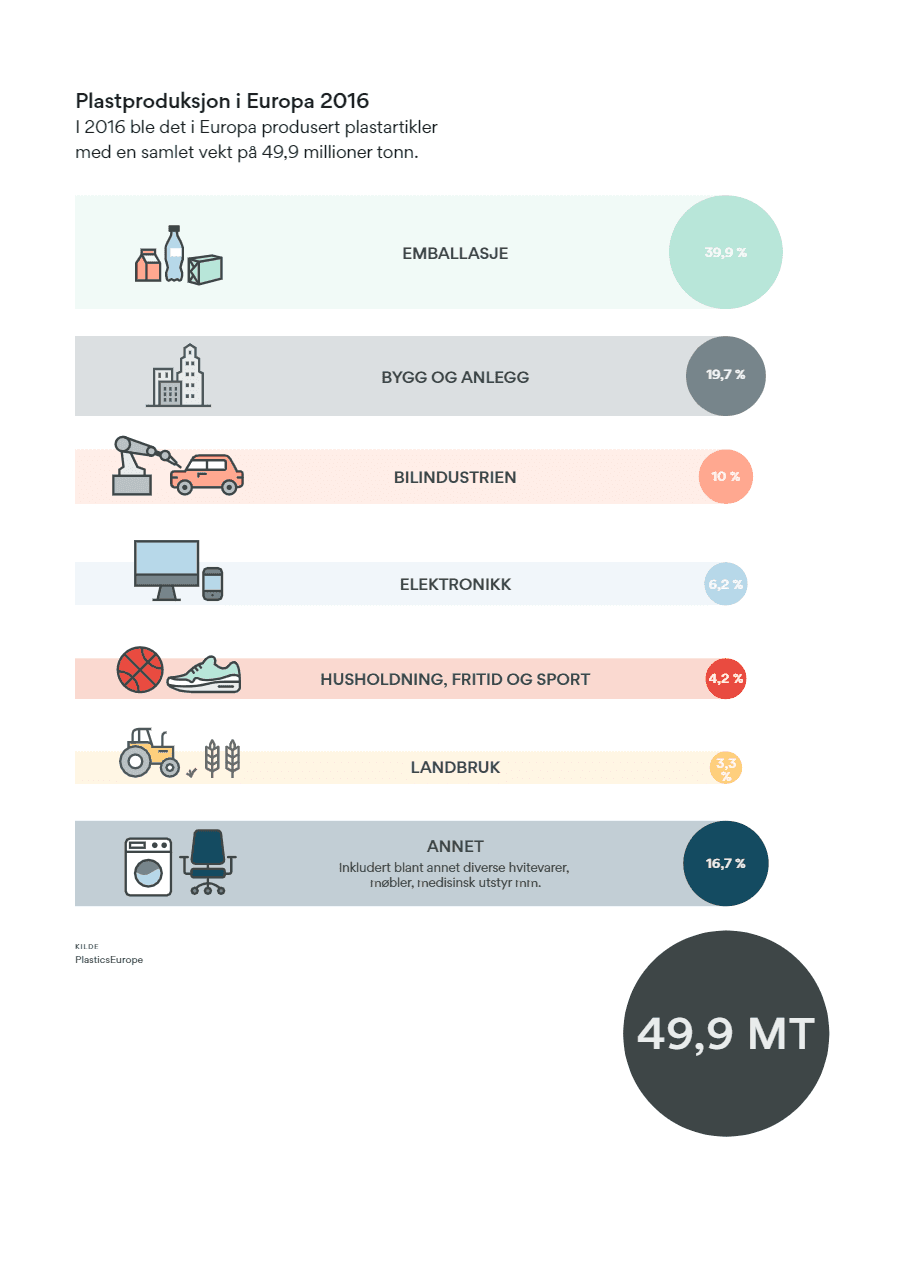 Mange steder i verden bygges det nye anlegg for ny plastproduksjon, store anlegg er på tegnebrettet – det investeres mye og hurtig for at forbruket av ny plast skal skyte fart, ikke synke. Det betyr også økte klimagassutslipp. Utslipp av klimagasser kommer mange steder i plastens verdikjede. De aller største fotavtrykkene oppstår når plasten blir til avfall og brennes.