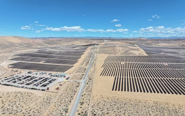 Estuary Powers sol + batterikraftverk Escape i Nevada inngikk i juni 2025 en langsiktig kjøpsavtale (PPA) med lokalt elektrisitetsverk og andre aktører i Las Vegas-området, et eksempel på at sol pluss batterier brer om seg som energikilde i solrike områder ikke minst i USA. (Foto: Estuary Power.)