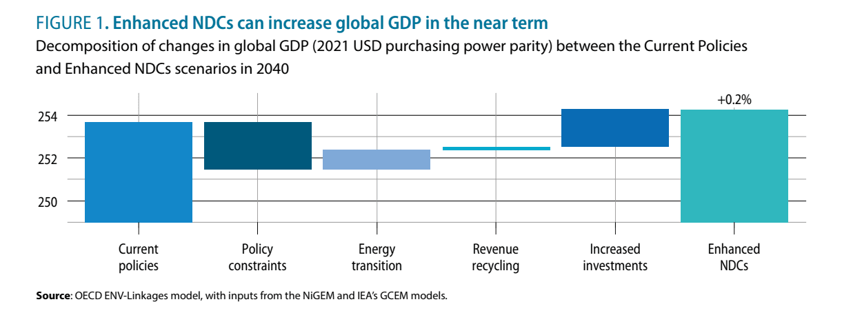 I rapporten har de to organisasjonene beregnet utviklingen i globalt bruttonasjonalprodukt (BNP) mot 2040 og videre. Grunnlaget er et scenario der landene leverer på ambisiøse nasjonale klimamål i tråd med målene i Parisavtalen.
