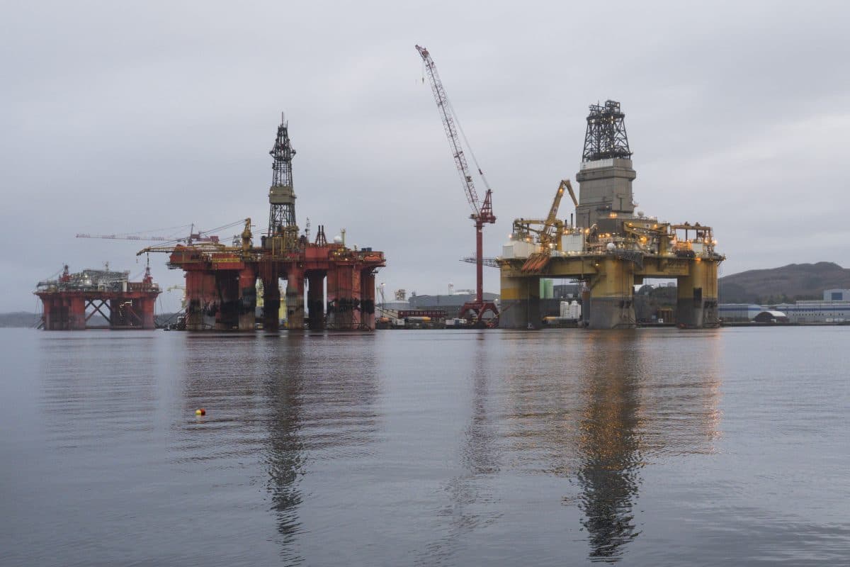 Hvor stor bør oljenæringen være i fremtiden? Oljerigger i opplag på Hanøytangen utenfor Bergen. (Foto: Bjørnar Morønning / NTB)