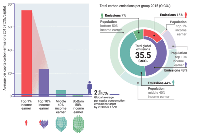 UNEP vier et helt kapittel til det de kaller en «low carbon-lifestyle», og som må sies å være mest rettet mot vestlige nasjoner. Mens verdens en prosent rikeste må redusere sitt karbonfotavtrykk med en faktor på 30 for å «leve i tråd med» Paris-avtalen. Tiltak som fremheves som viktige er: