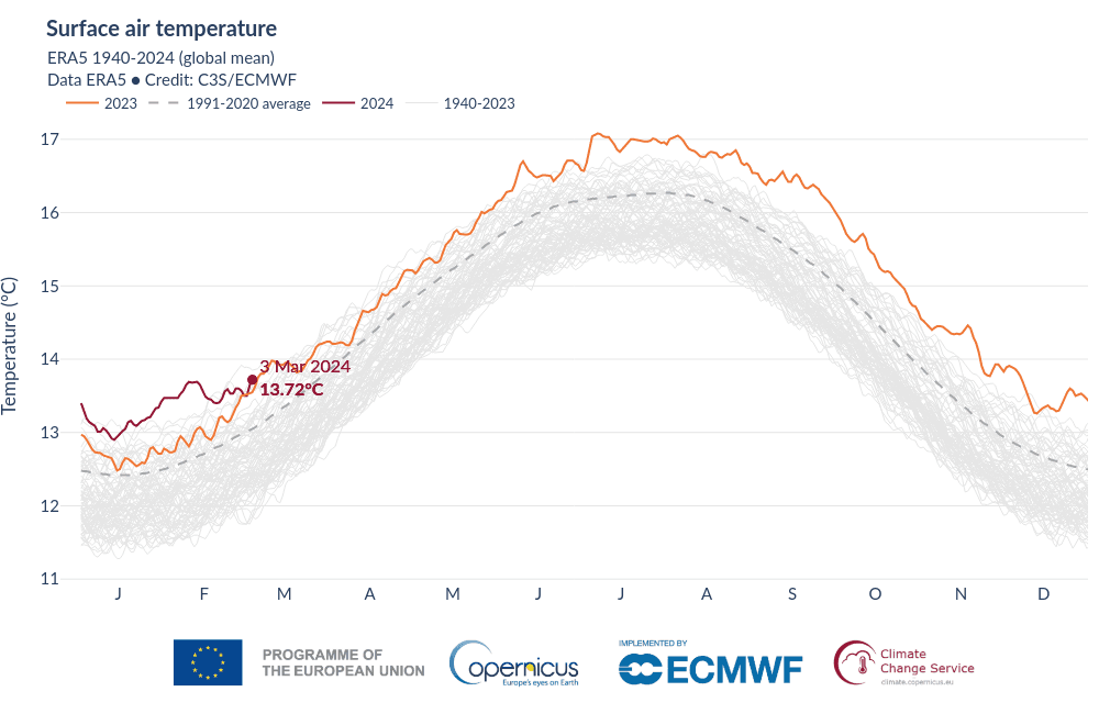De høye temperaturene nå er påvirket av en El Niño-hendelse i Stillehavet. Den gir uvanlig høy overflatetemperatur som påvirker været over mye av Jorden. Klimaforskere venter at denne El Niño-hendelsen vil dabbe av i løpet av våren. En La Niña-hendelse kan utvikle seg i løpet av sommeren. 2024 vil uansett bli et svært varmt år, og kanskje slå rekorden fra 2023.