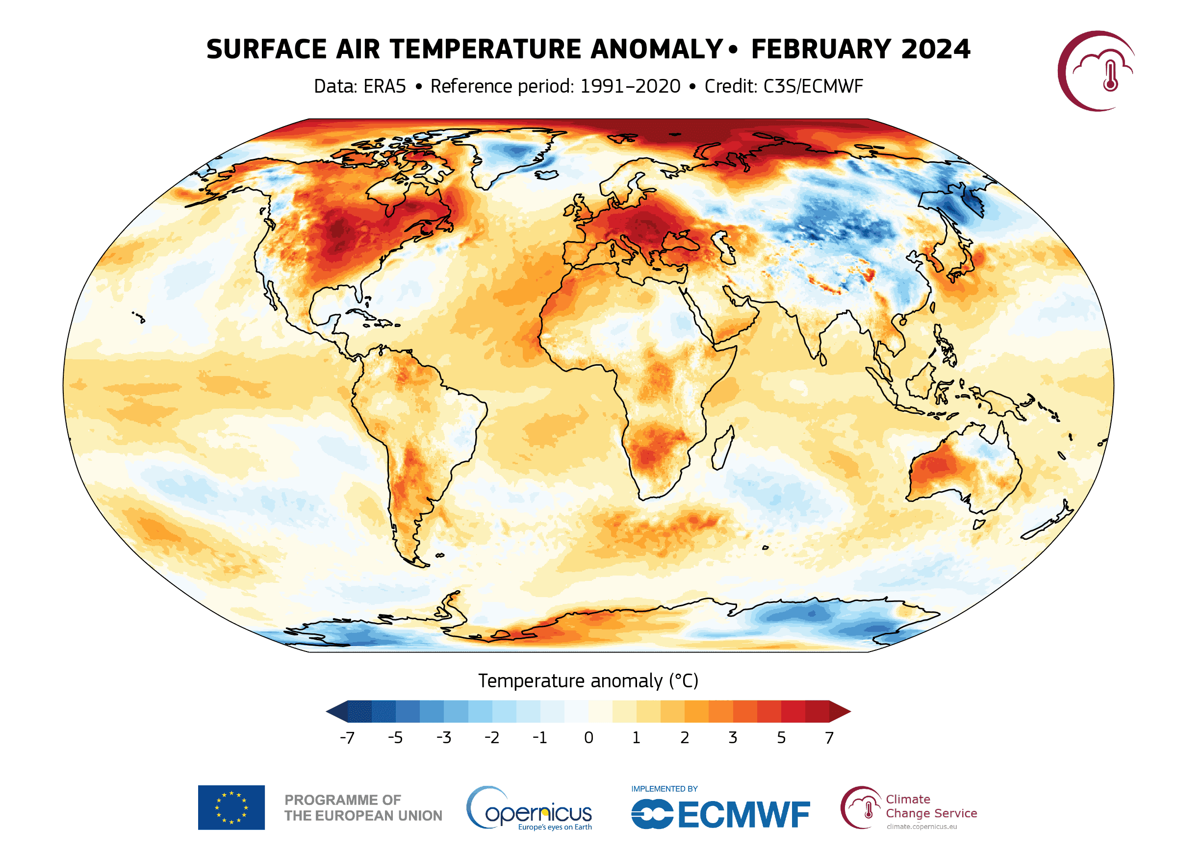 Rekordhøye temperaturer preget været i mange av verdens regioner i februar, skriver Den meteorologiske verdensorganisasjon (WMO). Deler av Nord- og Sør-Amerika, det nordvestlige og sørøstlige Afrika, det østlige og sørøstlige Asia, Vest-Australia og Europa opplevde temperatur-rekorder, enten for enkeltdager eller hele måneden. Samtidig var det svært kaldt i Nordvest-Canada, Sentral-Asia og deler av Sibir og det sørøstlige Kina.