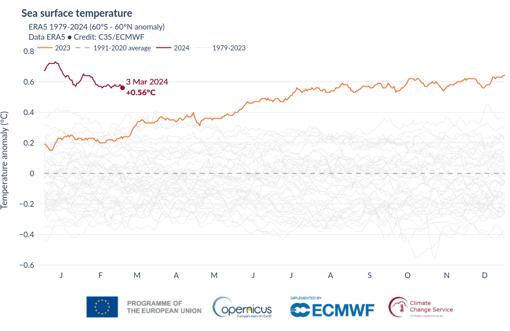 De høye temperaturene nå er påvirket av en El Niño-hendelse i Stillehavet. Den gir uvanlig høy overflatetemperatur som påvirker været over mye av Jorden. Klimaforskere venter at denne El Niño-hendelsen vil dabbe av i løpet av våren. En La Niña-hendelse kan utvikle seg i løpet av sommeren. 2024 vil uansett bli et svært varmt år, og kanskje slå rekorden fra 2023.