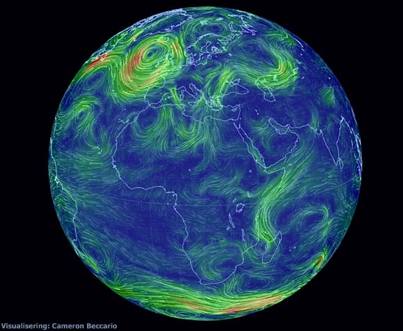 Nyhet10. desember 2015Vind og bølger i nær sanntidEn fantastisk interaktiv datavisualisering av globale værforhold.
