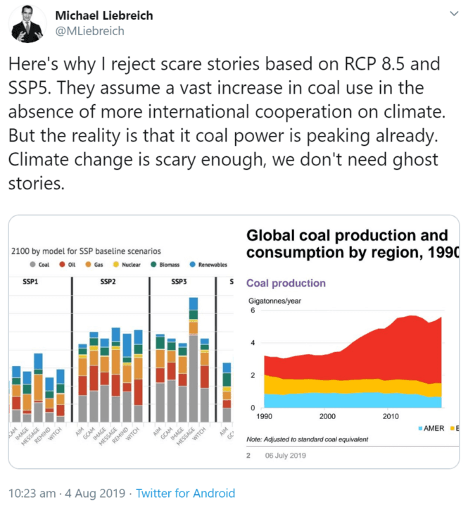 til å erklære på Twitter i fjor at RCP8.5-scenariet var «bollox».