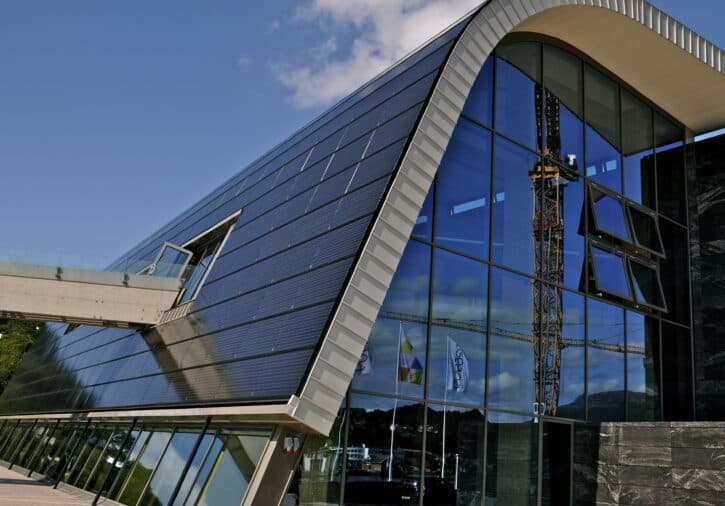I Norge står solen relativt lavt på horisonten og det er fare for snødekke i vinterhalvåret. Det skaper problemer for takmonterte solcellepaneler. Men hva om du hadde kledd bygninger med dem i stedet?