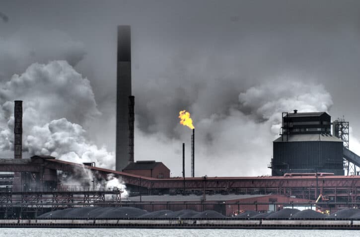 Hamilton-stålverket i Ontario i Canada i 2008, tre år senere ble produksjonen lagt ned på stedet, i dag er det bare kaldvalsing av stål produsert andre steder som pågår på verket. Stålproduksjon er en viktig utslippskilde, men det hjelper lite å legge ned produksjon i hjemlandet bare for å flytte den til land med mindre ambisiøs klimapolitikk. En karbontoll ved grensen tenkes å motvirke slik karbonlekkasje, men den kan også danne grunnlag for noe mye viktigere, ifølge NUPI-forsker Indra Øverland: En klimaklubb.