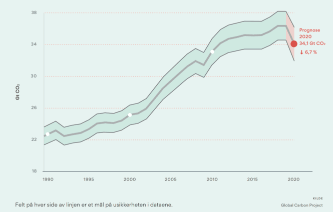 Andrew og Peters kan blant annet fortelle at allerede i oktober var de daglige utslippene tilbake på 2019-nivå i store deler av verden. Og i Norge har koronaknekken vært mindre enn i andre vestlige land.