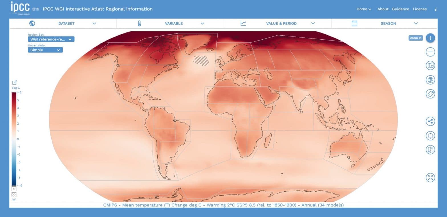 Det nye interaktive atlaset som ble lansert samtidig med Klimapanelets siste delrapport er åpent tilgjengelig for alle. Nedenfor får du en rask innføring i hvordan du bruker det. – Generelt er tanken å gi bedre forståelse og innsikt i hva klimaendringene dreier seg om, sier Jan S. Fuglestvedt, nestleder i Klimapanelets Arbeidsgruppe I. Foto: IPCC / skjermdump