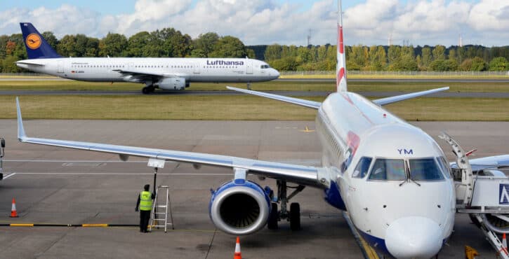 Et passasjerfly fra British Airways av typen Embraer ERJ-190 SR får fossilt påfyll på flyplassen i Edinburgh i Skottland. Luftfarten er kanskje den sektoren der teknologien så langt ikke har kommet opp med brukbare erstatninger for gammeldagse drivlinjer. En måte å holde en aldrende fossildrevet flyflåte i gang på mens vi venter på alternativene, er å bruke e-fuel i stedet for fossilt brensel. Men professor Edd Anders Blekkan ved NTNU er ikke overbevist om at det nødvendigvis gir noen gevinst.