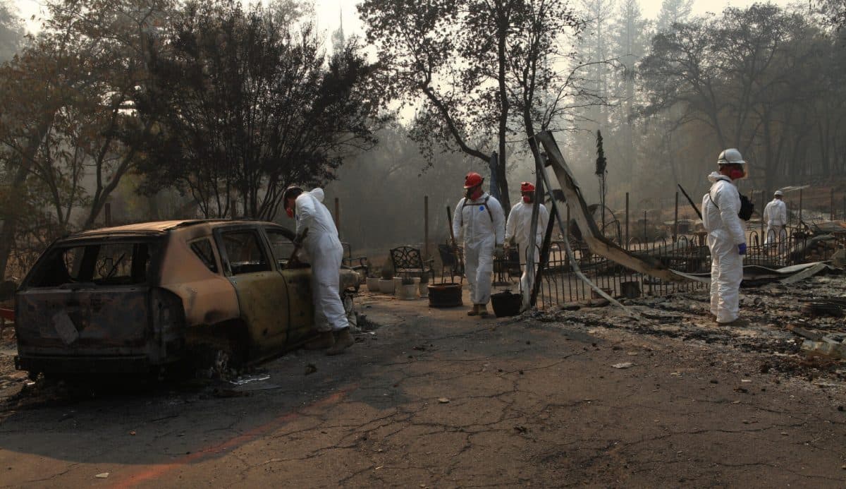 Ingeniørtropper fra USAs nasjonalgarde rydder opp og gjennomfører søk etter de ødeleggende skogbrannene i California i november. Flere store skogbranner over flere deler av verden satte sitt preg på 2018.