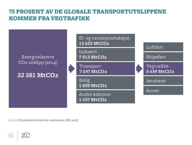 Norge skiller seg fra de fleste andre land ved at vår elektrisitetsproduksjon allerede er fornybar (om man ser bort fra kraftproduksjonen på norsk sokkel). Derimot er transportsektoren en minst like stor kilde til CO₂-utslipp her som i resten av verden – og en nøkkelsektor for å få ned klimagassutslippene. Utslippskuttene som Norge skal gjennomføre innen 2030, må i stor grad tas i denne sektoren.