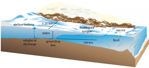 – Vi er i ferd med å finne ut mer om hvordan smeltingen faktisk foregår. Slike isbremmer vi snakker om her, kan tape masse på to måter. Den første er intuitiv: Overflatesmelting. Varmer du luften over isbreen, smelter isen på overflaten. Dette tar modellene høyde for, med ganske høy grad av sikkerhet. Vi forstår kanskje ikke alle de fysiske prosessene 100 prosent, men vi har noenlunde kontroll på de grunnleggende av dem, og modellene fungerer.